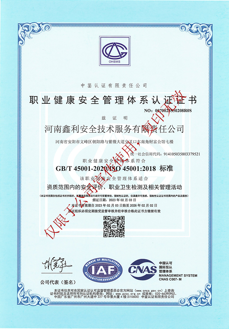 職業(yè)健康安全管理體系認(rèn)證證書(shū)