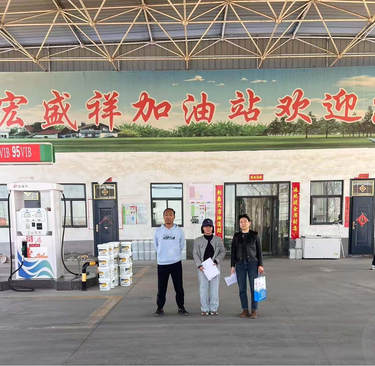 項目簡介 | 滑縣宏盛祥加油站成立于2019年07月01日,位于滑縣城關鎮大林頭村西300米X008線東側(縣道孔牛路),主要負責人:魏和平,統一社會信用代碼:91410526MA472NQ26B,類型:個人獨資企業。 該站坐東朝西,站外東側為民房,東南側為塑料廠房,西側為X008,南側為磨具廠房,北側為小路。占地面積為3333.35m2,自2022年6月取證以來,周邊環境未發生變化。站內總平面布置變化如下;2024年在加油站站房東側設置簡易房2間;提供有設計院出具的變更單。與站內加油設施的防火間距符合GB 50156-2021《汽車加油加氣加氫站技術標準》表5.0.13-2的要求。為方便加油員工為客戶加油、開票服務,2024年10月在汽油加油機附近增設可燃氣體報警儀。站內其他建、構筑物未發生變化。 站內主要設備包括雙槍加油機4臺,罐區有20m3雙層乙醇汽油罐2臺;20m3雙層柴油罐2臺,總容積為60m3(柴油折半計入)。根據GB 50156-2021《汽車加油加氣加氫站技術標準》第3.0.9條加油站的等級劃分,該站為三級加油站。該加油站汽油設備設置有油氣回收系統。 | |||